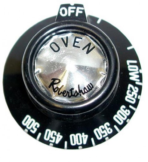 Knob, 2" dia., low - 500°F, with metal dial shaft, notch down, for use with BJWA ovens, (CCC item K-294), (ICS item A2400), replaces Jade Range: 300185000, 3018500000, 300-185-000, Southbend: A32-00012, Vulcan Hart: 710452 (NET Price)