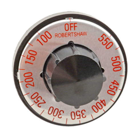 Electric Thermostat Dial, 100° to 550° F temperature range, heavy duty, fits standard .187 dia. D-stem, universal four-way mounting positions