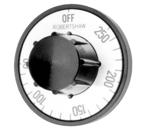 Electric Thermostat Dial, 300° to 700° F temperature range, heavy duty, fits standard .187 dia. D-stem, universal four-way mounting positions