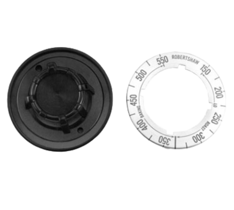 Thermostat Dial, low to 500° F temperature range, universal 4-way mounting, fit .29"D-stem, Robertshaw