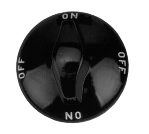 Rotary Knob, on/off, 2" OD., .25" dia. double D-stem, heat resistant, plastic