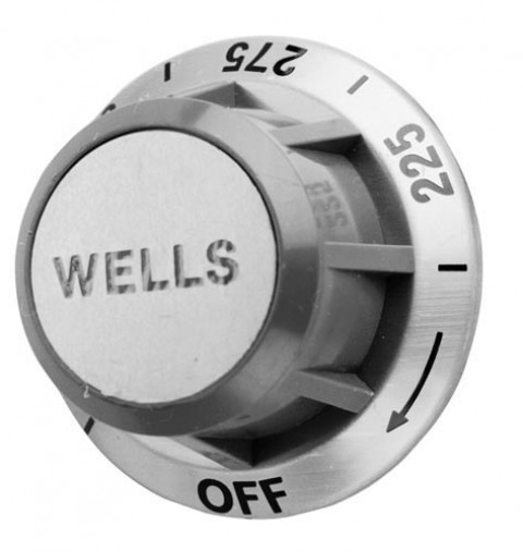 T'Stat Knob, [ 2-3/8" Dia ] [ Off-375-225] [Mount .187"] [Flat Down ], Off Printed On Bottom, Wells, Fryer F(49, 67, 68, 676, 678, 686), Fls49., Series: Llf.,
