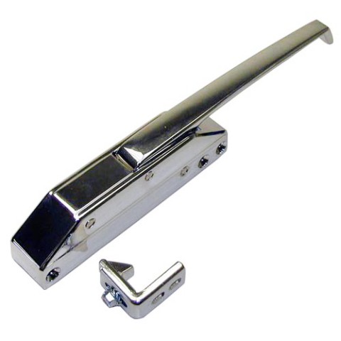Mechanical Latch W/ Strike, Straight Handle, No Lock, Length 10-1/4", Width 1-1/4", Inside Screw Centers 4-5/8", Outside Screw Centers 5-1/4", Base To Top Of Handle 1-11/16", For Series: 2830, 59-1105, C8765, 9176, 9177, R35