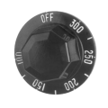 Thermostat Knob, 2" OD, 100° to 300° F temperature range, 1/4"D-stem, black, plastic