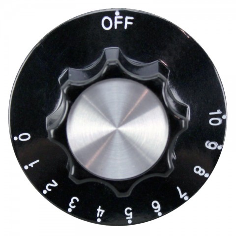 Knob, Thermostat Off 0-10, Knob, [ 2-1/4" Dia ] [ Off 10-0] [Mount .187"], [Flat Position Up], Toastmaster Warmer,