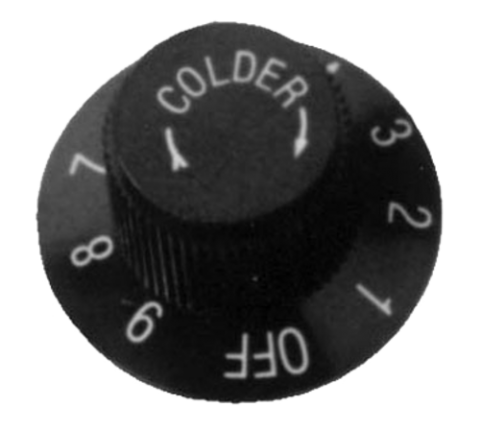 Control Knob, cold temperature, 13/16"D x 15/16" OD, black, plastic