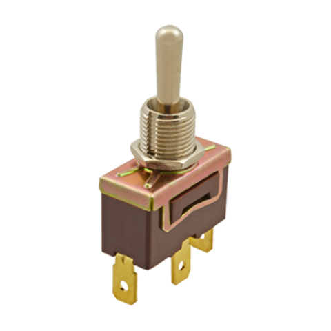 Toggle Switch, pulse, current, 15/32" dia. nipple, on momentary/off/on momentary, SPDT, (3) 1/4" tab terminals, brown, plastic, 125/250v, 15/10 amp