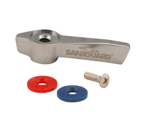 Faucet Handle Repair Kit, for commercial duty faucets, contains: handle, blue index disk, red index kit, handle screw, chrome-plated brass