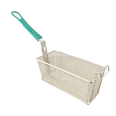Fry Basket, twin, 13-1/4" x 5-3/4" x 5-3/4" H, rectangular, front hook, nickel plated, EZ-Grip® teal vinyl handle, steel (replacement basket for Frymaster, Garland & Star fryers) (refer to FRY-BASKET CHART PDF for more information)