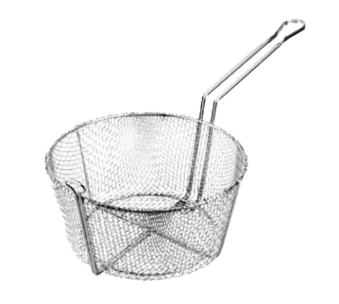 Fry Basket, 11-1/4" OD., 6" H, round, nickel-plated, top drain hook, #6 fine mesh
