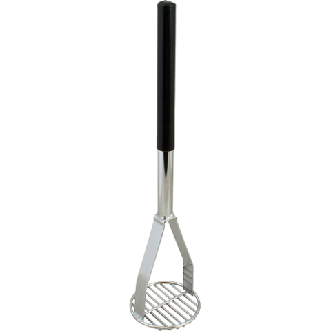 Potato Masher, 18-1/2" L, 4-1/2" dia, 3/8" wire spacing, nickel plated, black handle