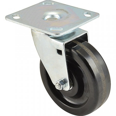 Caster, 4", swivel, plate, with brake, solid black phenolic wheel and hub