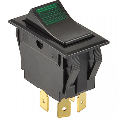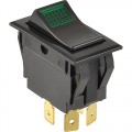 Switch, DPST, On/Off, 1/4" tab terminals, plastic, black, green lens, 250 VAC, 26 amps, for holding cabinets & chip warmers