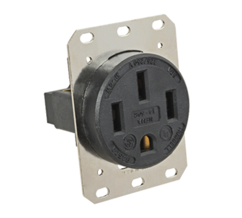 Receptacle, 3-3/4" H x 2-3/4" x 2-1/2", flush mount, black, 250v/60/3-ph, (Nema 14-50R)