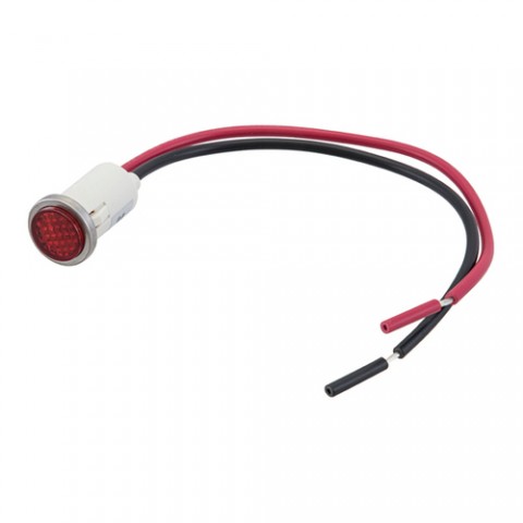 Indicator Light, 7", 6" wire leads, 120v, .499 watt, nylon body, stainless steel bezel, polycarbonate lens, red, UL