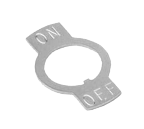 Toggle Switch Plate, on/off, 1"L x 5/8"W x 1/2" OD, steel, chrome-plated