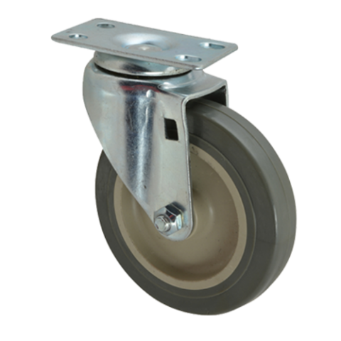 Caster, swivel plate, standard duty, 4" dia., Ball Bearing, metal wheel with polyofin tire