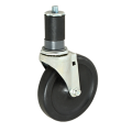 Caster, swivel stem, standard duty, 15/16"W, 5" dia., Ball Bearing, swivel, for 1-1/4" pipe without brake, non-marking black polyolefin wheel with plastic hub