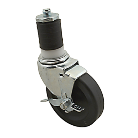 Caster, 4", swivel with brake, stem, for 1-5/8" OD tubing, 220 lb. capacity, polyolefin wheel