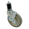 Caster, swivel stem, standard duty, 15/16"W, 5" dia., Ball Bearing, swivel, for 1-5/8" OD tubing with brake, metal non-marking wheel gray polyurethane tire