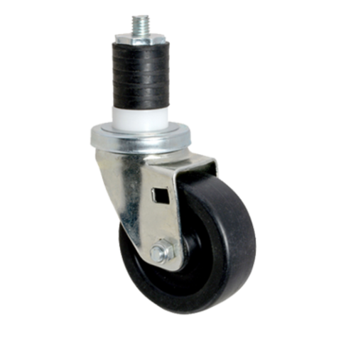 Caster, swivel stem, medium duty, 3-1/2" dia., for 1-5/8" OD tubing without brake, black rubber wheel