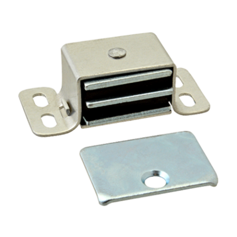 Magnetic Cabinet Catches, 20 lb. pull, zinc plated steel, steel housing