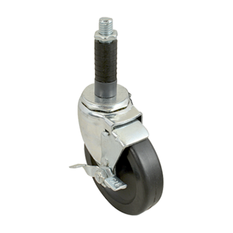 Caster, swivel stem, standard duty, 4" dia., for 1" OD tubing with brake, black rubber wheel