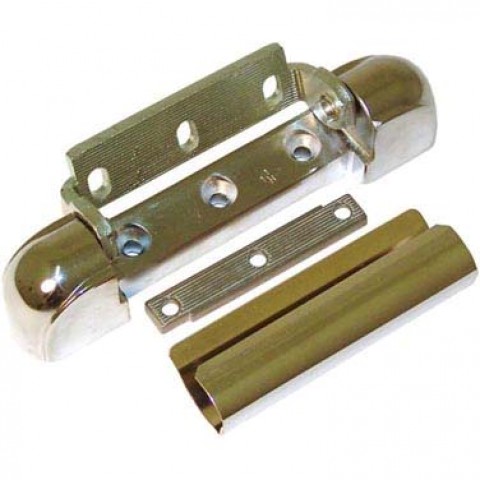 (10217000008) Kason® Door Hinge, 5-3/4" x 1-1/8", reach-in hardware, offset 1-1/8", edge mount, adjustable, die-cast zinc flange and adjustment plate, brass cover, zinc plated steel strap, 1-Year Manufacturer's Warranty (Patented) (NET Price)
