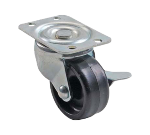 Caster, plate, swivel, 2", with brake, polyolefin