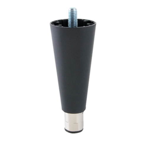 Leg, equipment, 2-3/8", 6" min., 3/4" adjustable, 1/2" - 13 mounting stud, ABS black plastic, nickel plated, zamak foot