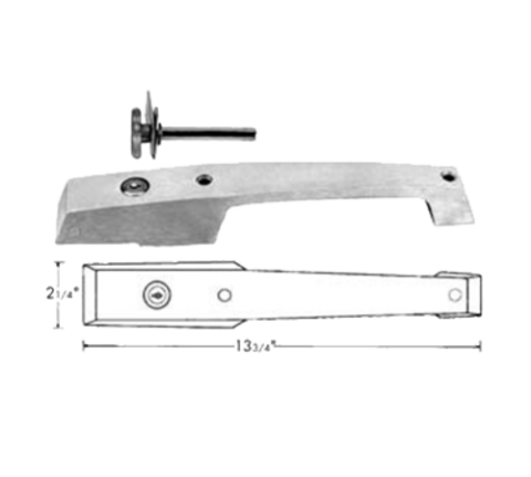 Door Pull, with lock, 13-3/4"L x 2-1/4" H, inside release for doors up to 4" thick, keys and screw hole caps, satin aluminum