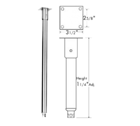 Leg Assemblies, long, plate 3-1/2"L, 24" H, 1-1/4" adjustable, 1-5/8" OD, stainless steel, satin finish