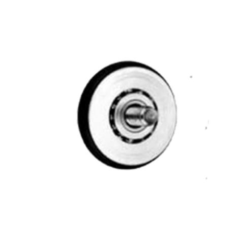 Roller with rubber tire, hole is countersunk for flat head screw, zinc plated steel
