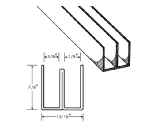 Sliding Door Double Channel, 6' L, extruded aluminum
