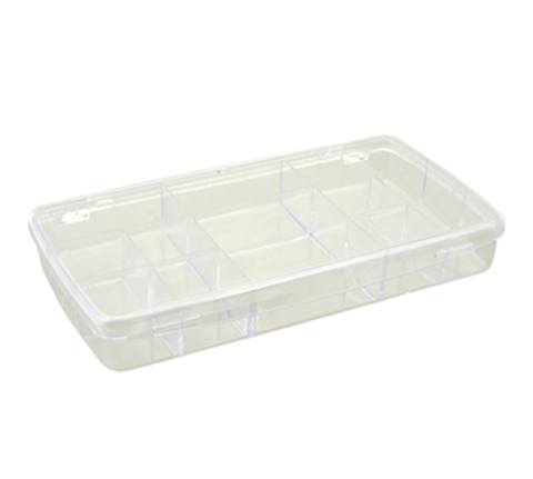 Storage Box, (12) compartments, 8-1/4" x 4-1/2" x 1-3/8" deep, plastic, clear