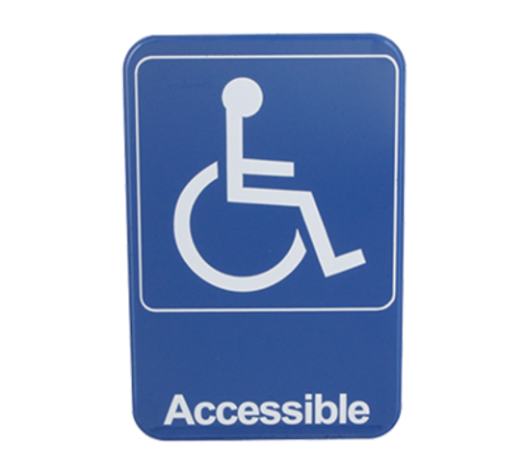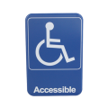 Sign, Handicap Accessible, ADA Symbol, 6" x 9", blue with white symbol & letters, plastic with adhesive back