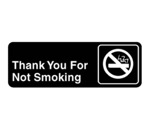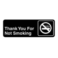 Sign, "Thank You for Not Smoking", 3" x 9", black with white letters, plastic with adhesive back