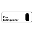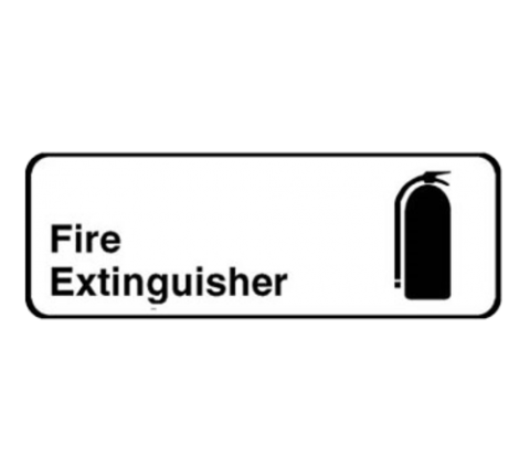 Sign, "Fire Extinguisher", 3" x 9", white with red letters, plastic with adhesive back