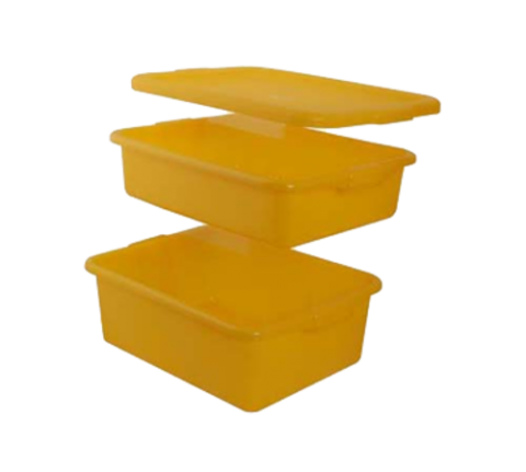 Food Storage Box, with colander & lid, 20" x 15" x 7" deep, polyethylene, yellow, dishwasher & freezer safe, NSF, made in USA