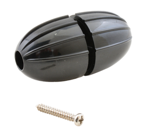 Carriage Handle Knob, 2-1/8", 1-1/16" outer dia., oval, 1-4"D stem, includes: mounting screw, plastic, black