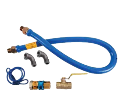 Dormont® Gas Connector Kit, 48"L x 3/4" NPT, includes ball valve, snapfast disconnect, heavy duty gas hose with blue plastic coating, equipment restraining device, (2) street elbows