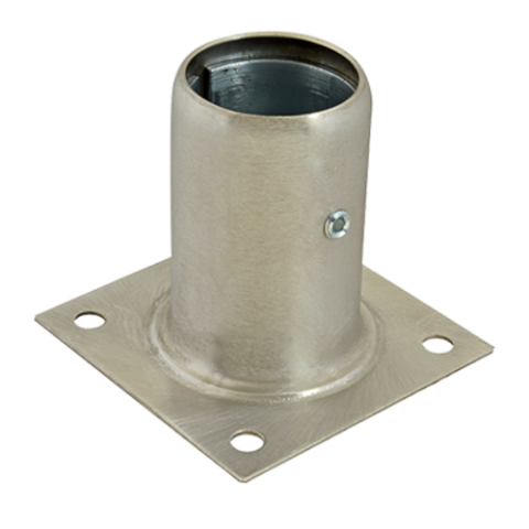 Leg Socket, for 1-1/4" pipe, 1-1/2" or 1-5/8" OD tubing, plate mounted, stainless steel