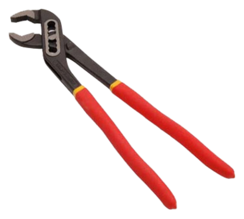 Box Joint Pump Pliers, 12"L, seven position self-gripping jaw, chrome vanadium steel head with red rubber coated handles