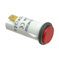 Indicator Light, 1-1/4"D, 1/2" lens OD, 5/8" collar OD, red lens, 1/4" tab terminal, 250v, .5 watt