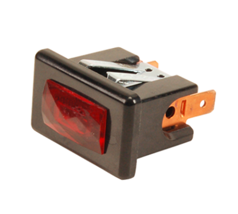 Indicator Light, 21/32" x 1-7/32", tab terminals, brown face, red lens, 125v