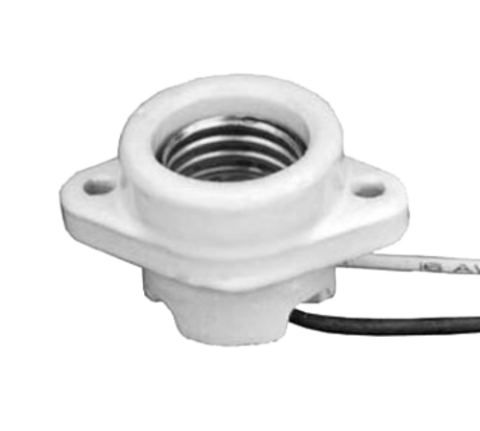 Lamp Socket, fits 1-1/2" ' dia. hole, 2" center mounting holes, 6" wire leads, for general or high temperature use, porcelain, 125/600v, 660 watt