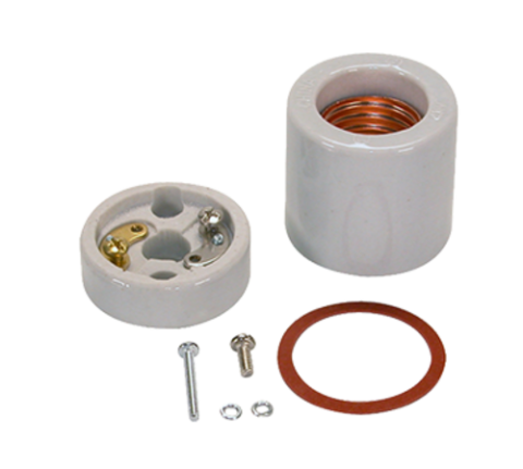 Heat Lamp Socket, screw terminals, mounting hardware, porcelain, 125/250/250v, 600 watt