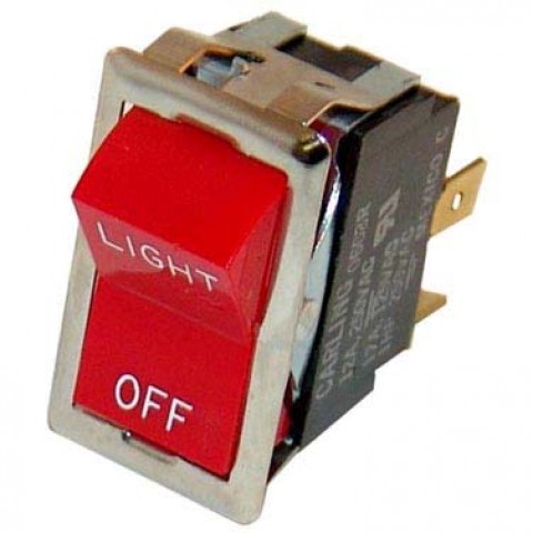 Rocker Switch, momentary/ON/OFF, 1/4" tab terminal, DPST, red, replaces Montague: 01293-9, 1293-9, 23129-0, EV-17-3, V17-3 (CCC item A-295) (ICS item E578) (NET Price)