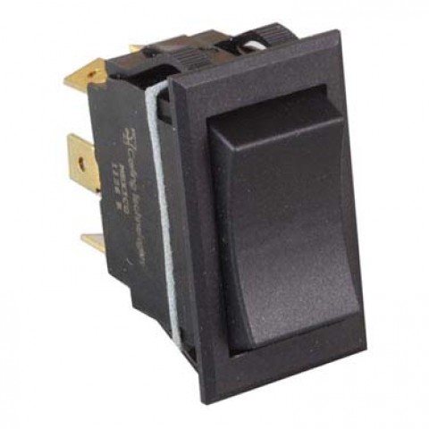 Rocker Switch, 3 position, ON/OFF/ON, 1/4" tab terminal, DPDT, black with amber & blue lights, replaces Garland: 2140, 1729100, 228264-1 (CCC item A-491) (ICS item E681) (NET Price)