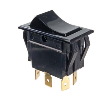 Rocker Switch, on/on, double pole, double throw, (6) 1/4" tab terminals, black, 125/277v, 20 amp